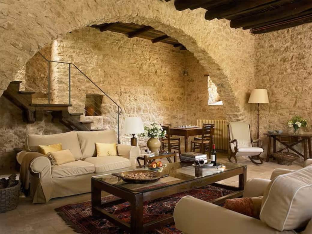 La casa dell'Arco è ampia e accogliente: una grande cucina, una sala da pranzo ritagliata nella roccia e un grande soggiorno al piano terra. Al primo piano 4 ampie camere e 3 bagni.